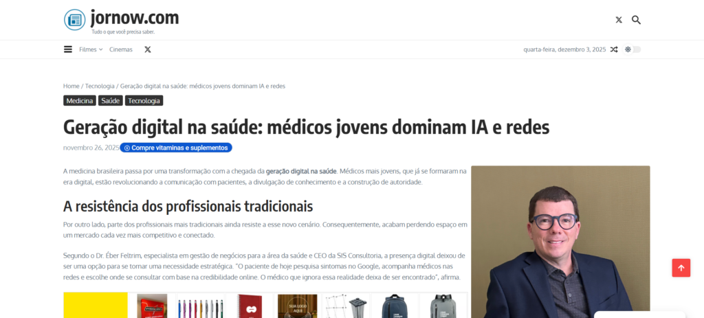 Ao longo dos últimos anos, a presença do Dr. Éber Feltrim ficou mais relevante na mídia. As matérias e artigos foram publicados em diversos portais e veículos de comunicação, de segmentados e também dos conhecidos pelo grande público.